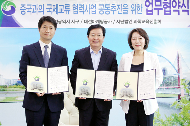 [이뉴스투데이 대전충청취재본부 박희송 기자] 대전 서구(구청장 장종태)는 24일 구청 다목적실에서 대전마케팅공사(이명완 사장), (사)과학교육진흥회(김홍업 이사장)와 함께 ‘국제교류 협력사업 공동추진협약’을 체결했다고 밝혔다. 이달 1일 중국과의 자유무역협정(FTA)이 정식 서명됨에 따라 인구 13억명, GDP 12조 달러 규모의 중국과 교역에 새로운 장이 펼쳐질 것으로 예상되고 있다. 이번 협약은 점차 증가하고 있는 양국의 민간 교류사업에 적극적으로 대응함으로써 지역경제를 활성화하고자 협약이 체결됐다. 협약을 통해 ▴대전마케팅공사는 중국 의료관광객 유치를 위한 행정적 지원을 하게 되며 ▴사단법인 과학교육진흥회는 중국 강소성 국제교류센터와의 긴밀한 업무협조로 관광객을 유치하고 프로그램에 대한 책임을 다하기로 합의했다. 장종태 서구청장은 “중국 관광객의 지역 방문을 유치하기 위해 각종 행정지원과 당면 현안사항 해결을 위해 노력하겠다”며 “특히 서구의 선진 의료 인프라 등을 최대한 활용해 지역경제 활성화를 위해 힘쓰겠다”고 전했다. 출처 | http://www.enewstoday.co.kr/news/articleView.html?idxno=398380
